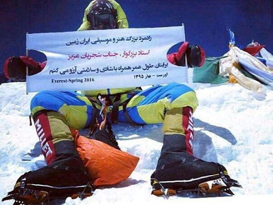 آرزوی سلامتی برای استاد شجریان از بالای قله اورست +عکس