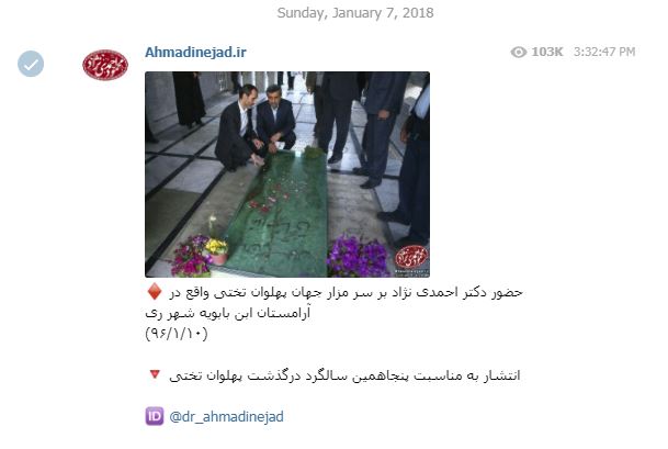 تا قبل از این پست ، در هفت روز گذشته کانال شخصی محمود احمدی نژاد فعالیتی نداشت، هر چند کانالها هوادارانش همچنان با خط مشی سابق فعال بودند.