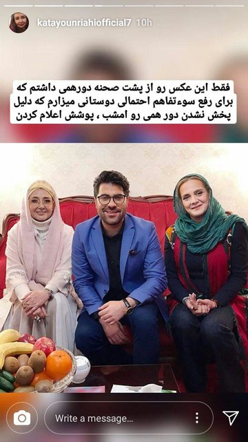 او همچنین با انتشار تصاویری از حضور خود در برنامه «دورهمی» نوشت که مسئولان پخش و ناظران سازمان باید به یک ملت پاسخگو باشند که کجای این پوشش دارای مشکل است؟