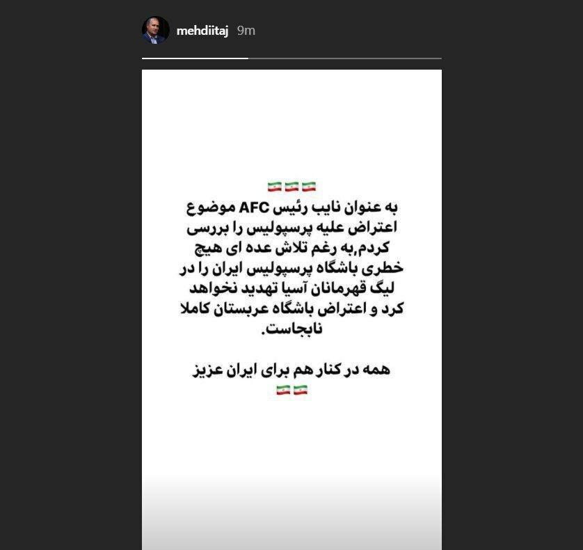 پیام جدید مهدی تاج :هیچ خطری  پرسپولیس را تهدید نمی کند