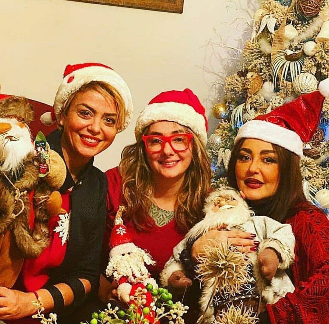 شقایق فراهانی هانیه توسلی وشبنم فرشادجو در شب سال نو میلادی دور هم جمع شده و با پوشش بابانوئل عکس گرفتند.