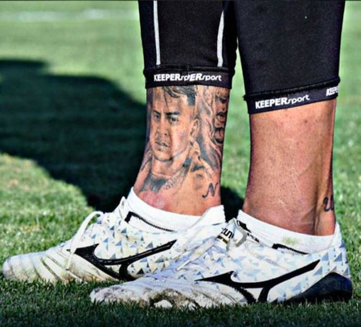 او که در این فصل ۱۰ کلین شیت برای پرسپولیس ثبت کرده و یکی از شانس های دستکش طلایی لیگ بیستم محسوب می‌شود، برای چند لحظه جوراب ساق بلندش را پایین زد تا مشخص شود در قسمت پایینی پایش تصویر خودش را خالکوبی کرده است.
