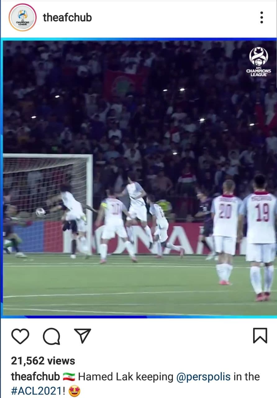 دروازه‌بان بلند قامت پرسپولیس در دقیقه ۴۰ ضربه سر وحدت هانانوف روی توپ ارسالی از کرنر رادر شرایط سختی مهار کرد که همین واکنش او در صفحه اینستاگرام کنفدراسیون فوتبال آسیا نیز بازتاب داشت و AFC با انتشار ویدئویی از این صحنه نوشت: «حامد لک پرسپولیس را در ACL ۲۰۲۱ نگه داشت.»
