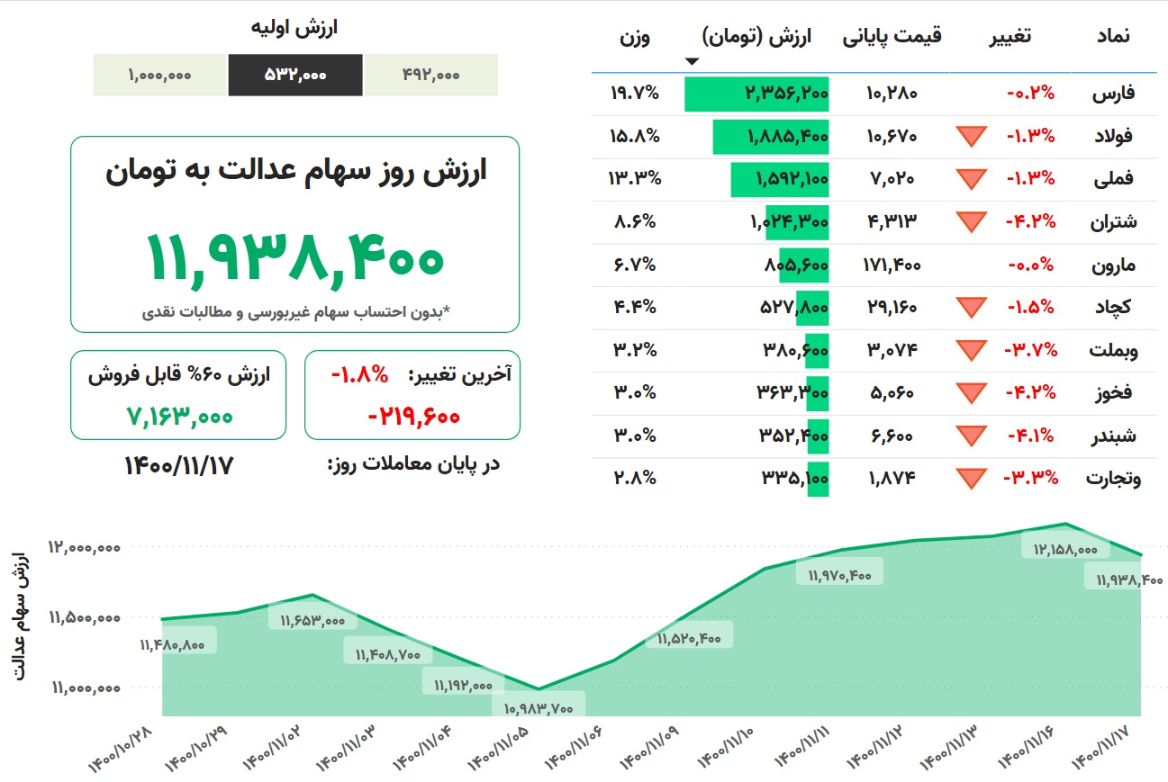 ارزش سهام عدالت، امروز ۱۷ بهمن ۱۴۰۰