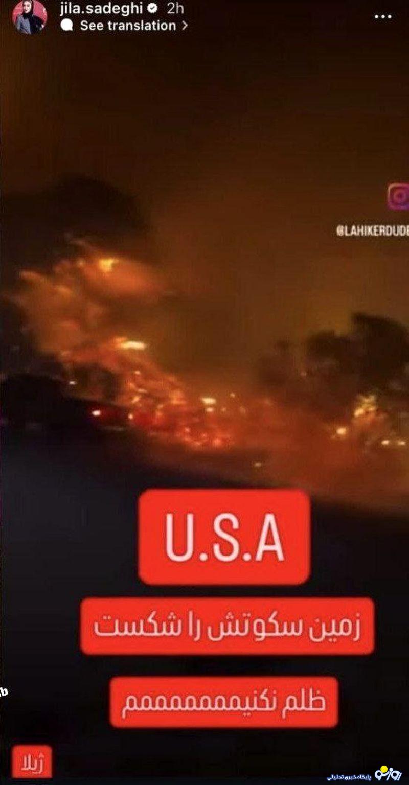 عکس/ استوری جنجالی ژیلا صادقی درباره آتش سوزی لس آنجلس