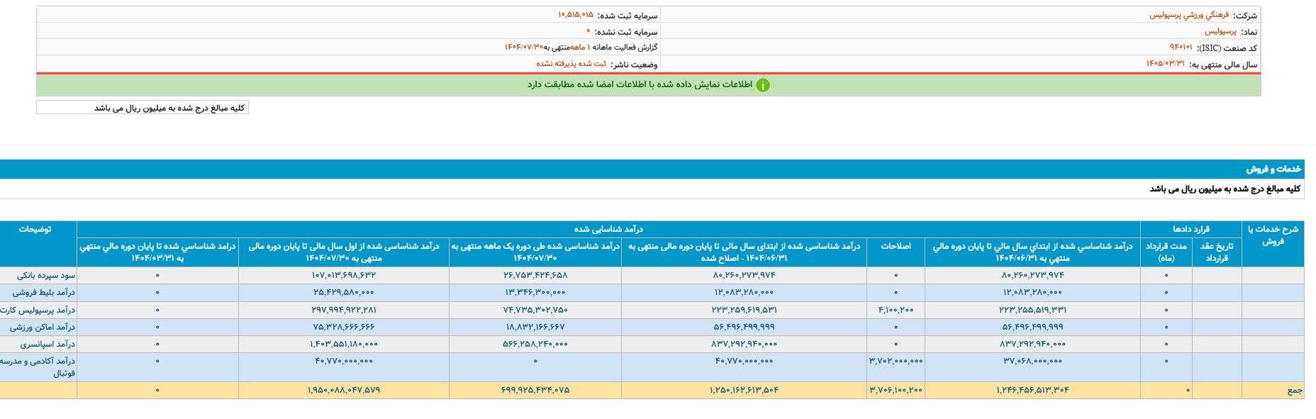 باشگاه پرسپولیس درآمد خود از ابتدای فصل تا پایان ماه مهر را در سایت کدال افشا کرد.