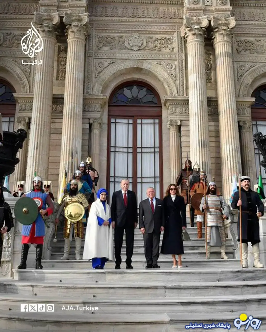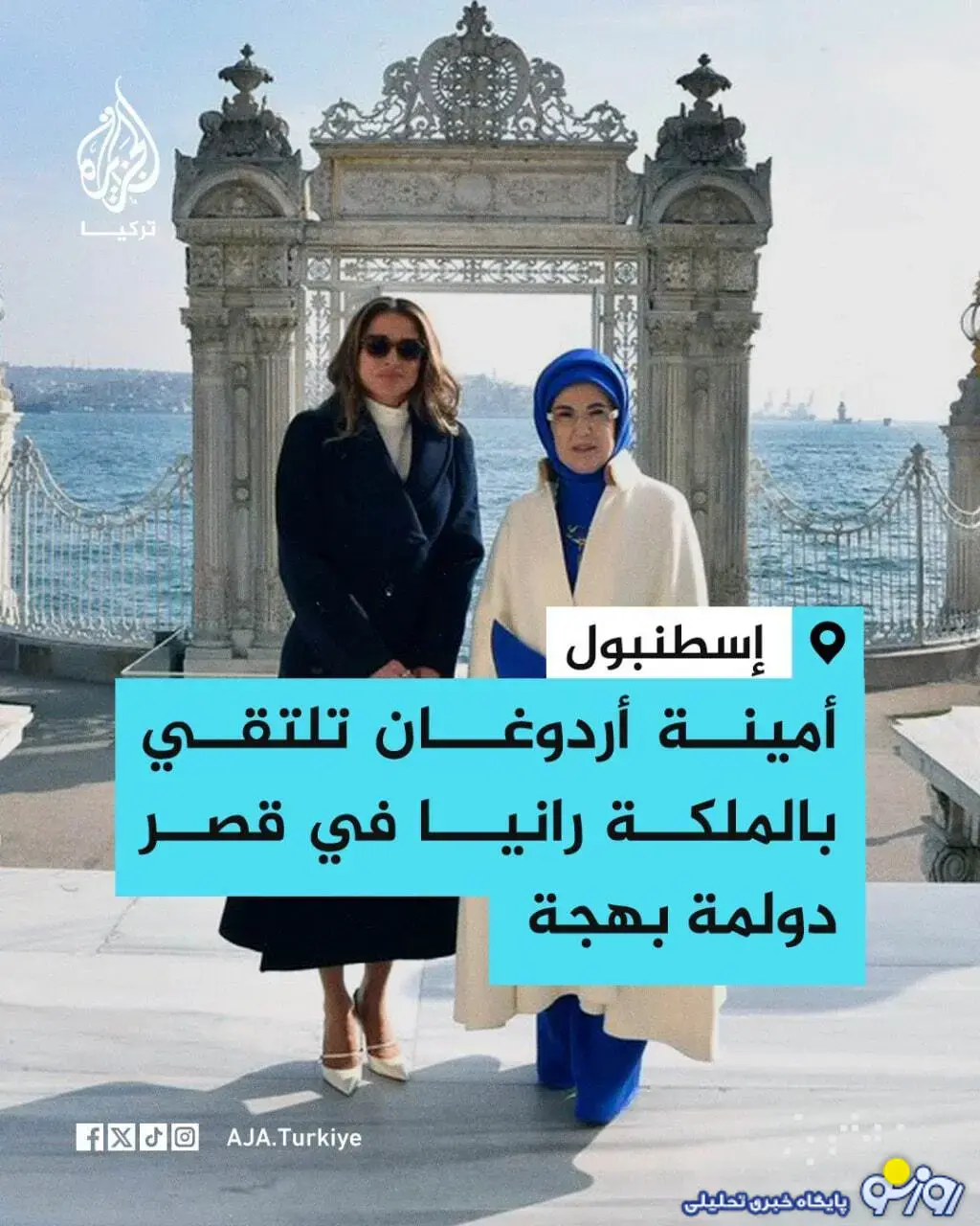 امینه (همسر اردوغان رئیس جمهوری ترکیه) از "رانیا" ملکه اردن و همسر پادشاه این کشور (عبدالله دوم) در استانبول ترکیه استقبال کرد.