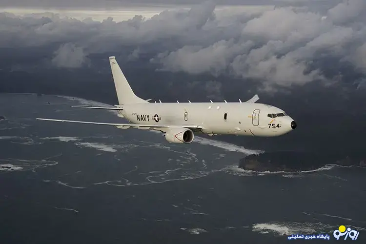روزنو :یک فروند هواپیمای جاسوسی Boeing P-۸ A Poseidon نیروی دریایی ایالات متحده درحال جاسوسی از رزمایش دریایی سپاه در تنگه هرمز است.
